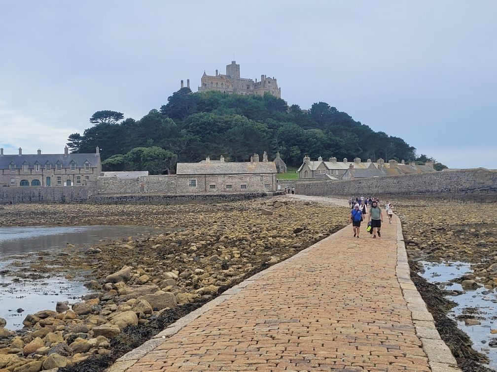 When you visit England, one of the special traditions that is unique to that country is the chance to enjoy an afternoon cream tea, which is far more than drinking a cup of hot tea.  Another aspect of life in England that makes this nation such an interesting place to visit is the presence of so many castles that once were – or still are, to this day — the home of present or past kings, rulers, and leaders.  A few castles that spring to mind include Leeds Castle in Kent, Hever Castle in Kent, the remains of the castle at Tintagel in Cornwall that was once of the home of the legendary King Arthur, and, of course, Windsor Castle outside London that is one of the many residences of current King Charles III. Believe it not, you can combine an afternoon cream tea with a visit to an English castle, which is an unbelievable, one-of-a-kind experience.  One specific English castle that serves an afternoon cream tea is St. Michael’s Mount in Cornwall, which is England’s most southwesterly county.  What makes the experience of visiting St. Michael’s Mount even more special and memorable is that this castle was actually built on an island off the southern coast of Cornwall, adjacent to the small village of Marazion.  There are two ways to visit St. Michael’s Mount, on a small boat at high tide or on foot at low tide.  At low tide, a cobblestone pathway is exposed by the retreating ocean water within Mount’s Bay, which allows visitors easy access to St. Michael’s Mount.