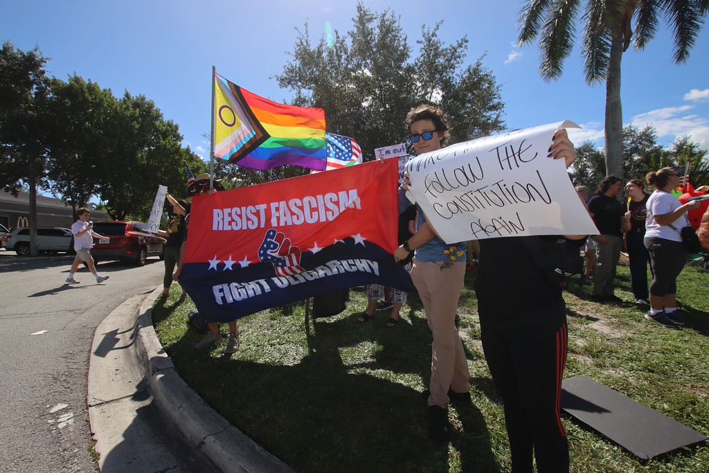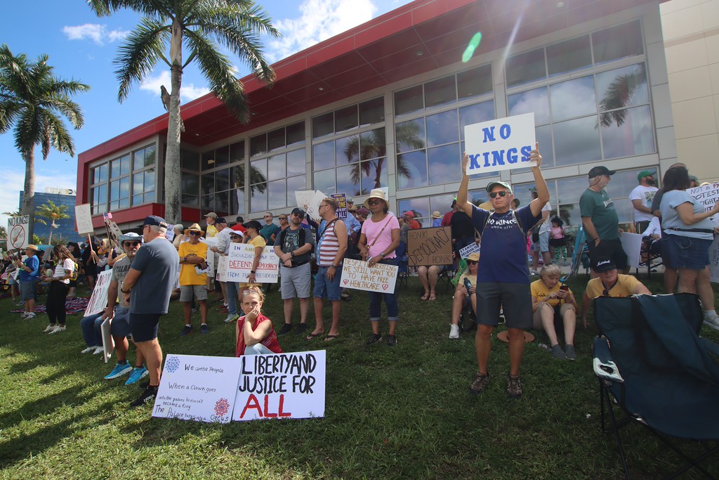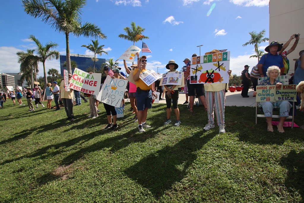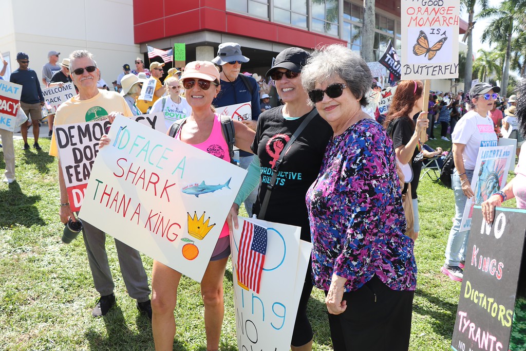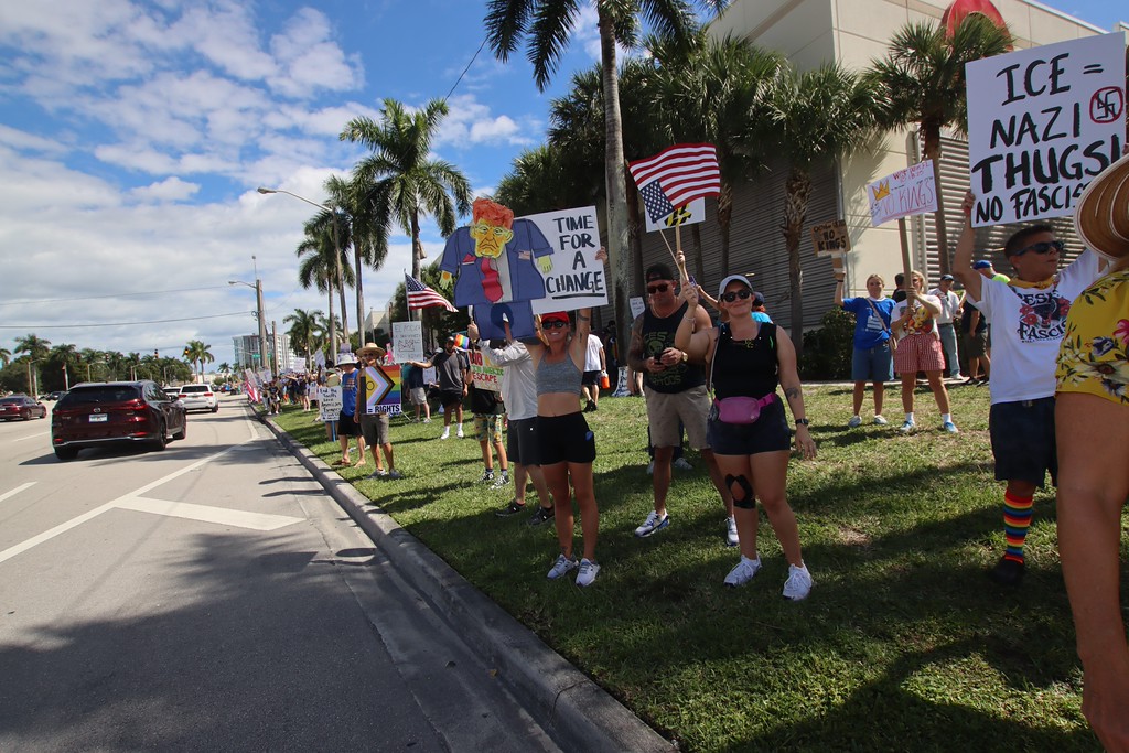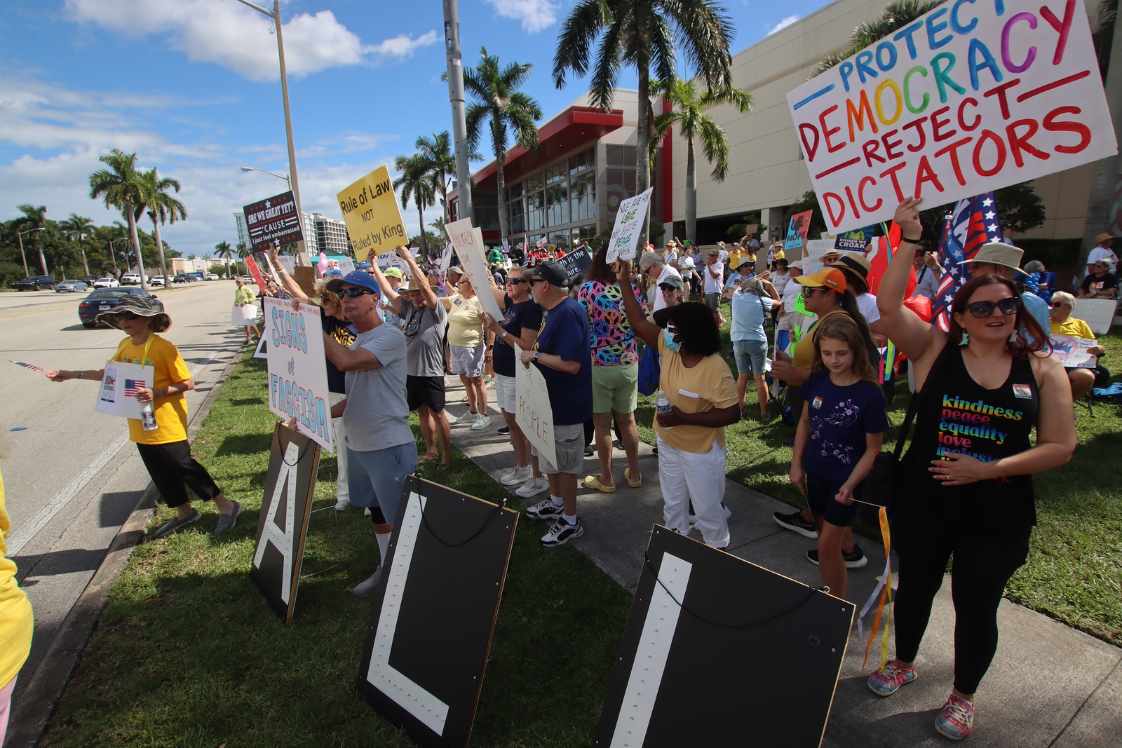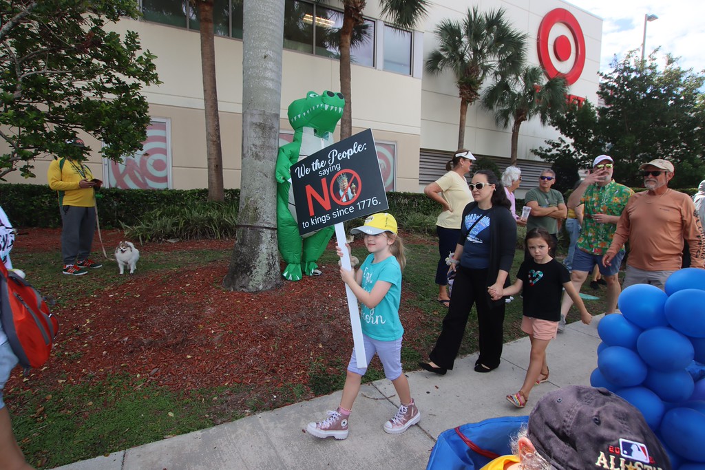In West Palm Beach, demonstrators gathered along Palm Beach Lakes Boulevard in front of the Target store. The nationwide “No Kings” protest coincided with a weekend visit by President Donald Trump to his Mar-a-Lago resort in Palm Beach. It was a peaceful demonstration.