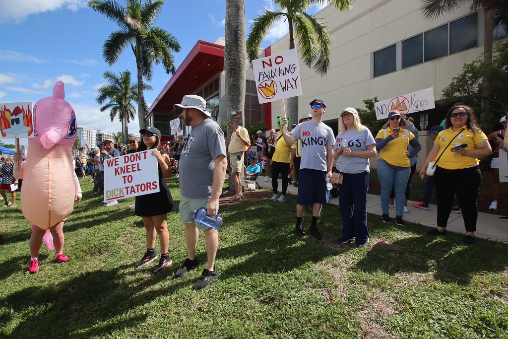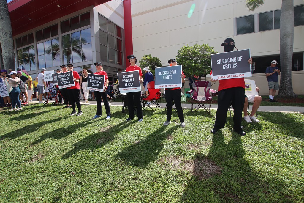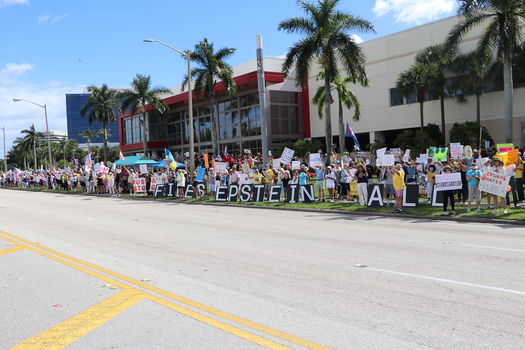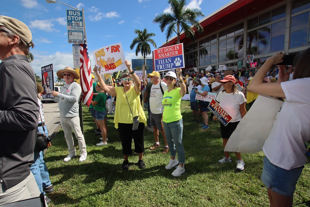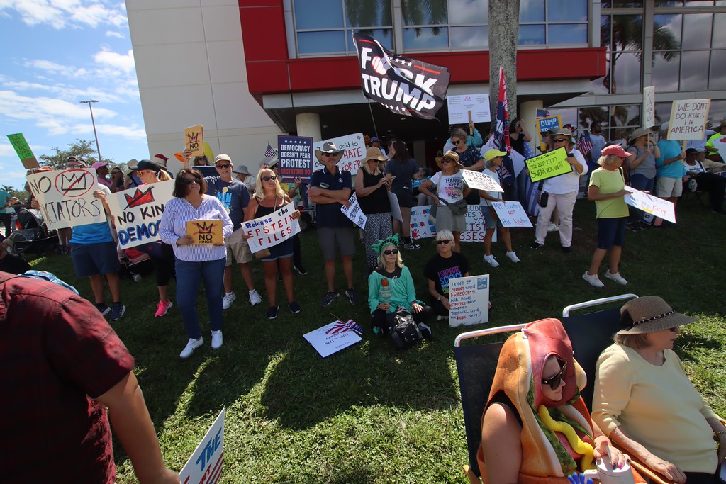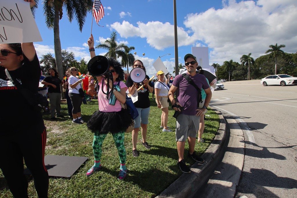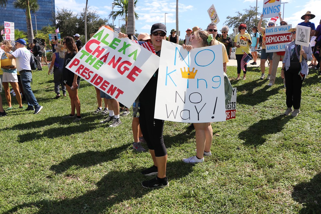 In West Palm Beach, demonstrators gathered along Palm Beach Lakes Boulevard in front of the Target store. The nationwide “No Kings” protest coincided with a weekend visit by President Donald Trump to his Mar-a-Lago resort in Palm Beach. It was a peaceful demonstration.